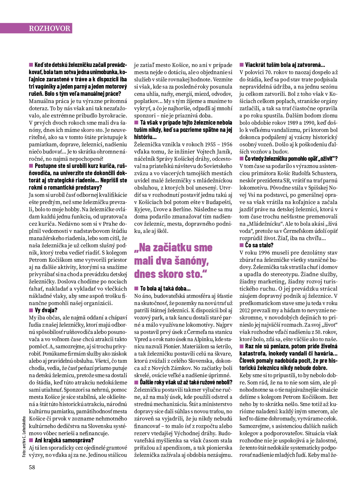 Rozhovor s Ľubomírom Lehotským, predsedom občianskeho združenia Detská železnica Košice bol publikovaný v novembri 2025 v magazíne TÉMA.