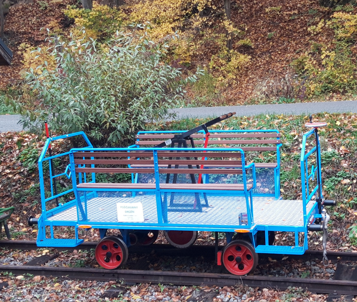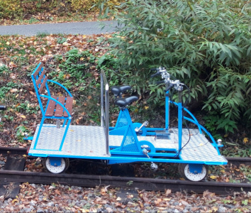 Drezína ktorá sa pohybuje po železničných koľajniciach a je poháňané ľudskou silou pomocou pedálov, podobne ako bicykel.