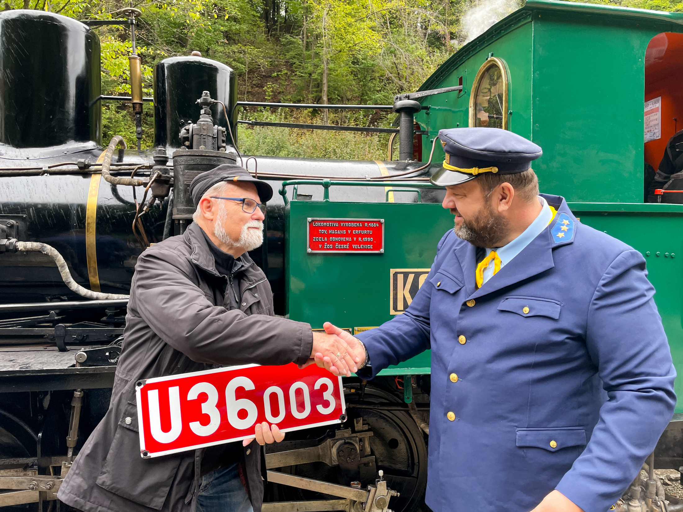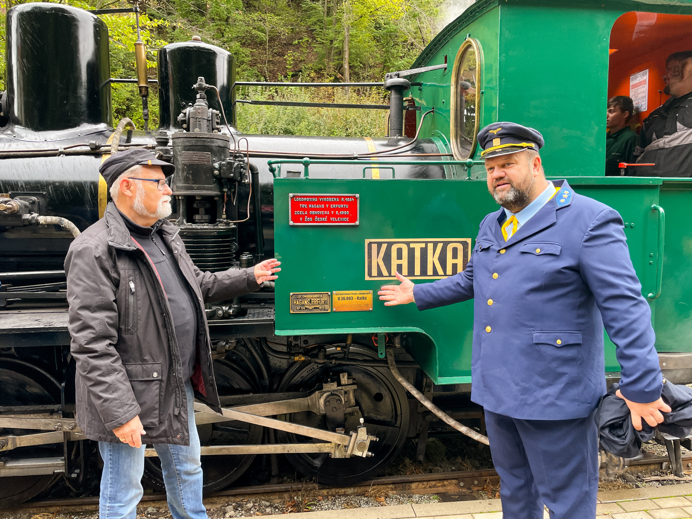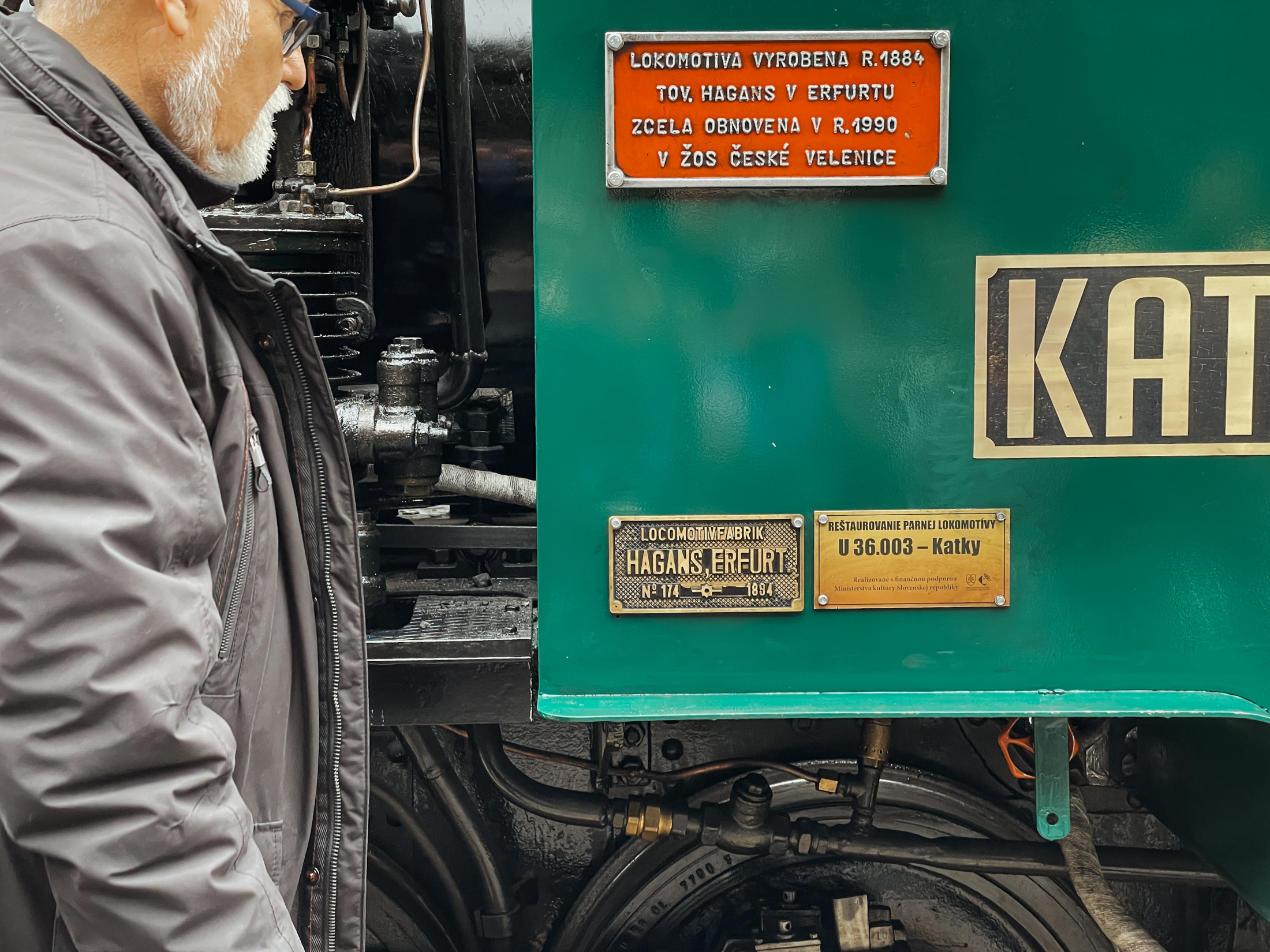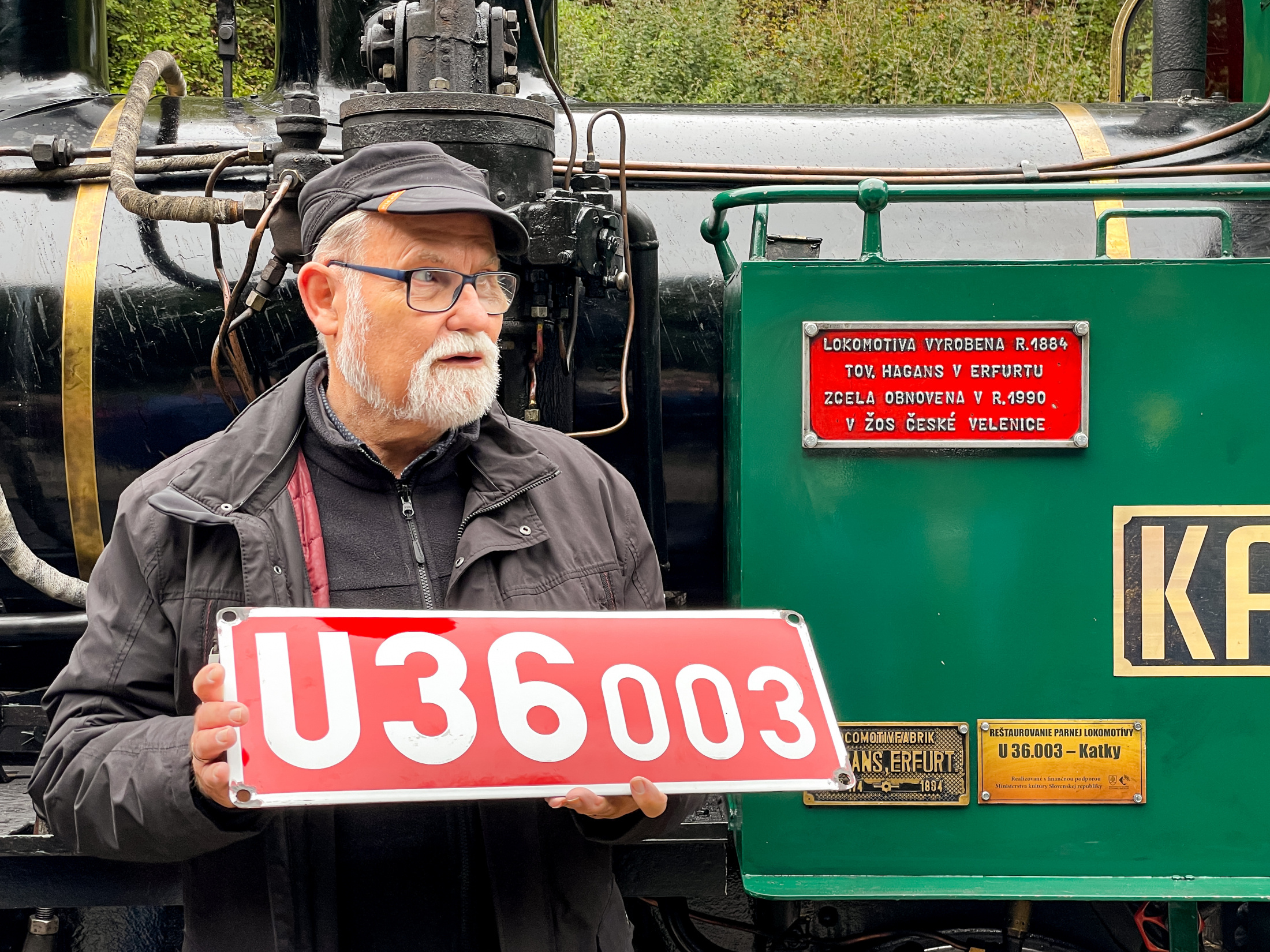 Stoštyridsaťročný rušeň Katka U36 003 sa po rozsiahlej takmer trojročnej generálnej oprave môže podľa neho pýšiť dobrým technickým stavom. "Je to vlastne najstaršia prevádzkovaná úzkorozchodná parná lokomotíva v strednej Európe. My si myslíme, že aj v celej Európe, ale nemáme všetky dáta," priblížil ďalej Lehotský. Hagansovi a jeho synovi venovali na železničke okrem suvenírov a literatúry aj smaltovanú tabuľku s číslom, ktorá bola pred opravou viac ako 30 rokov súčasťou parnej lokomotívy.