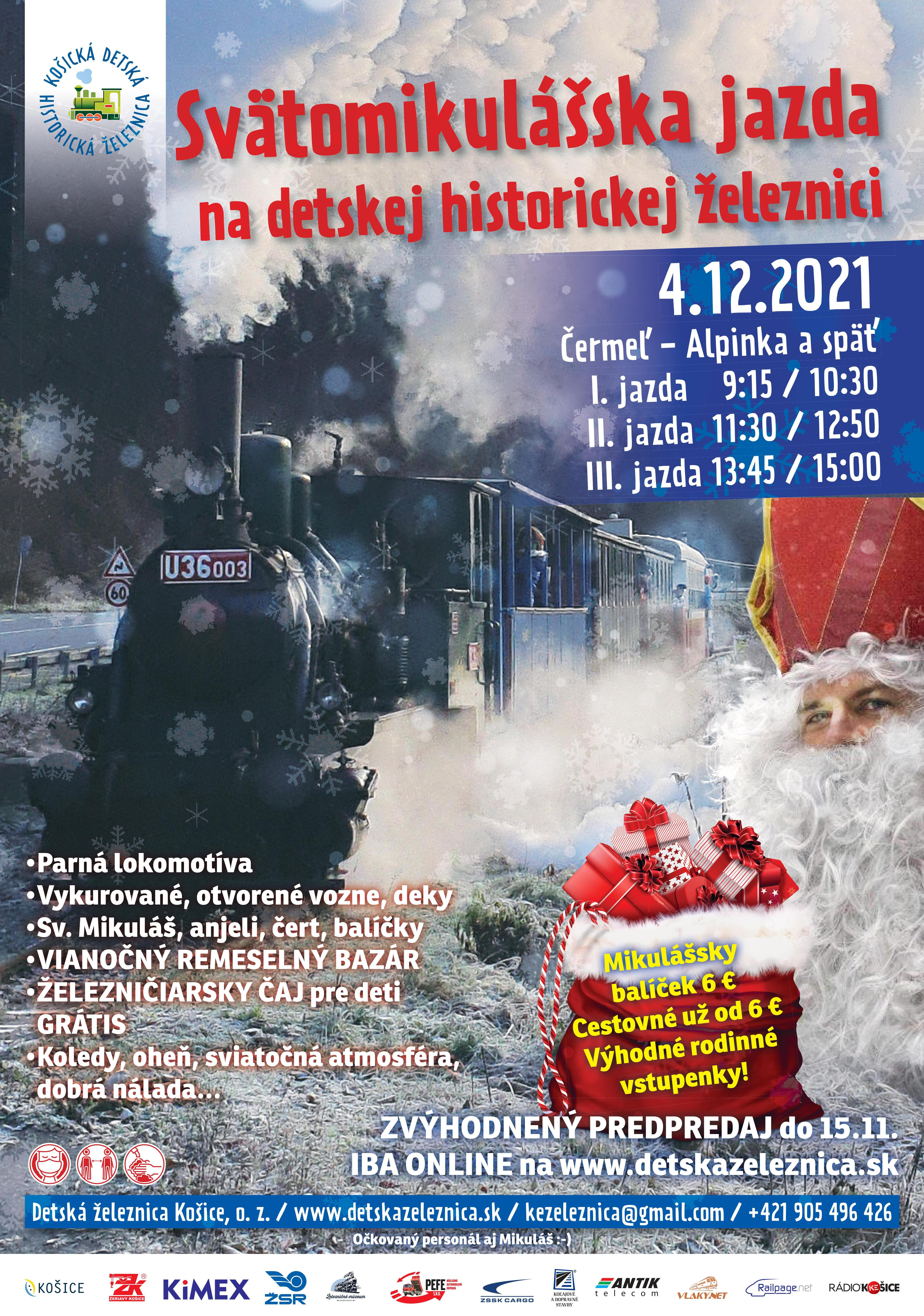 Lístky bude možné dokúpiť aj na mieste v deň jazdy 18.12. bez možnosti zakúpenia mikulášskeho balíčka! Fotenie s Mikulášom, anjelom a čerrtom bude možné pre všetkých.