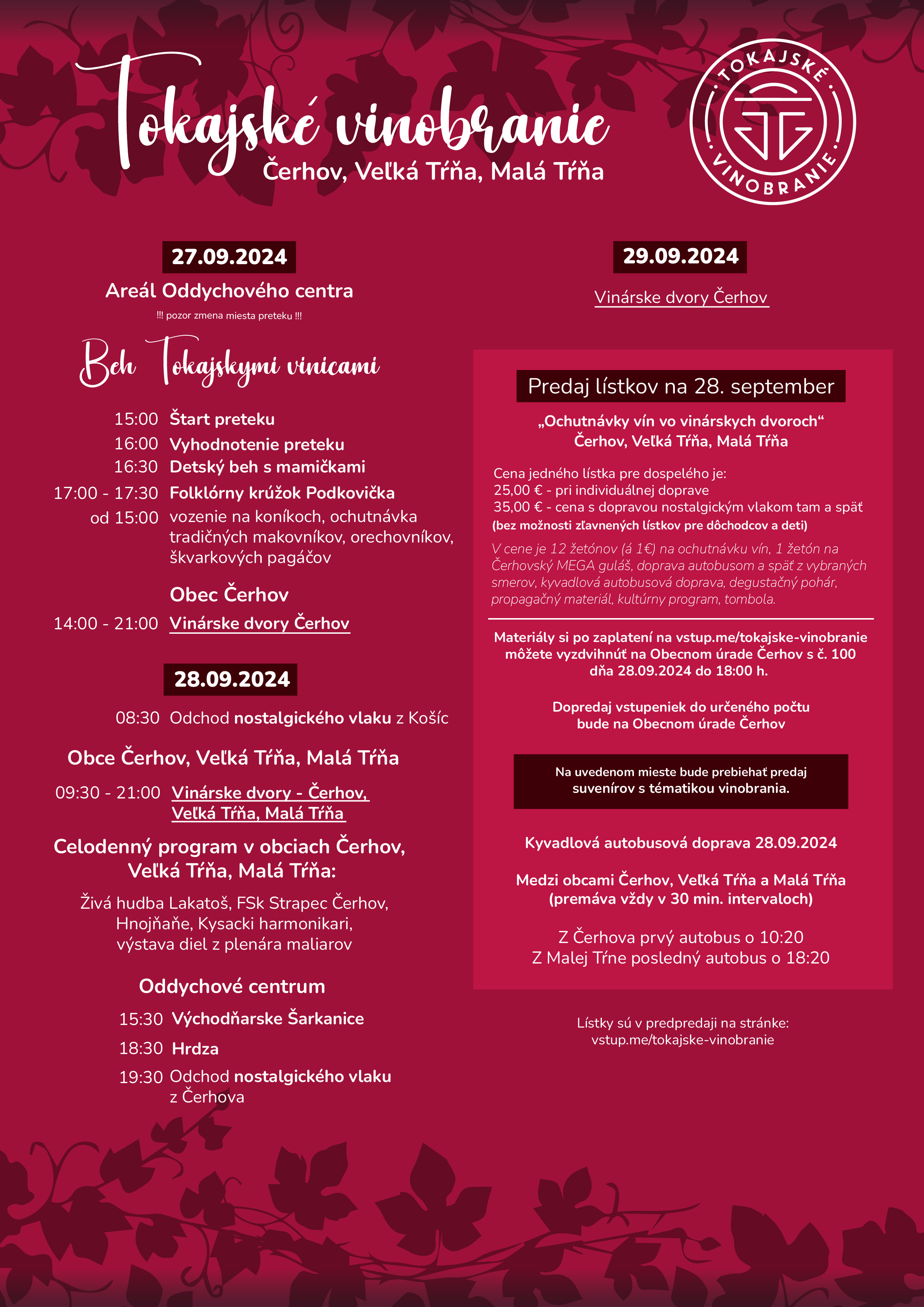Tokajský expres vás bezpečne privezie i odvezie na jedno z tradičných vinobraní na východe Slovenska v obci Čerhov.